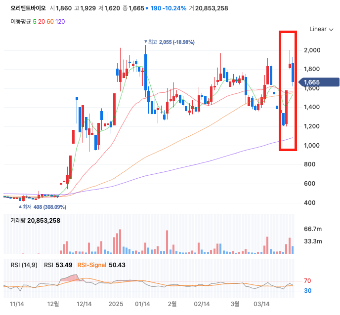 프리즘 인사이트의 AI 분석 시스템은 오리엔트바이오의 주가 움직임에서 주목할 만한 기술적 신호를 포착했습니다.