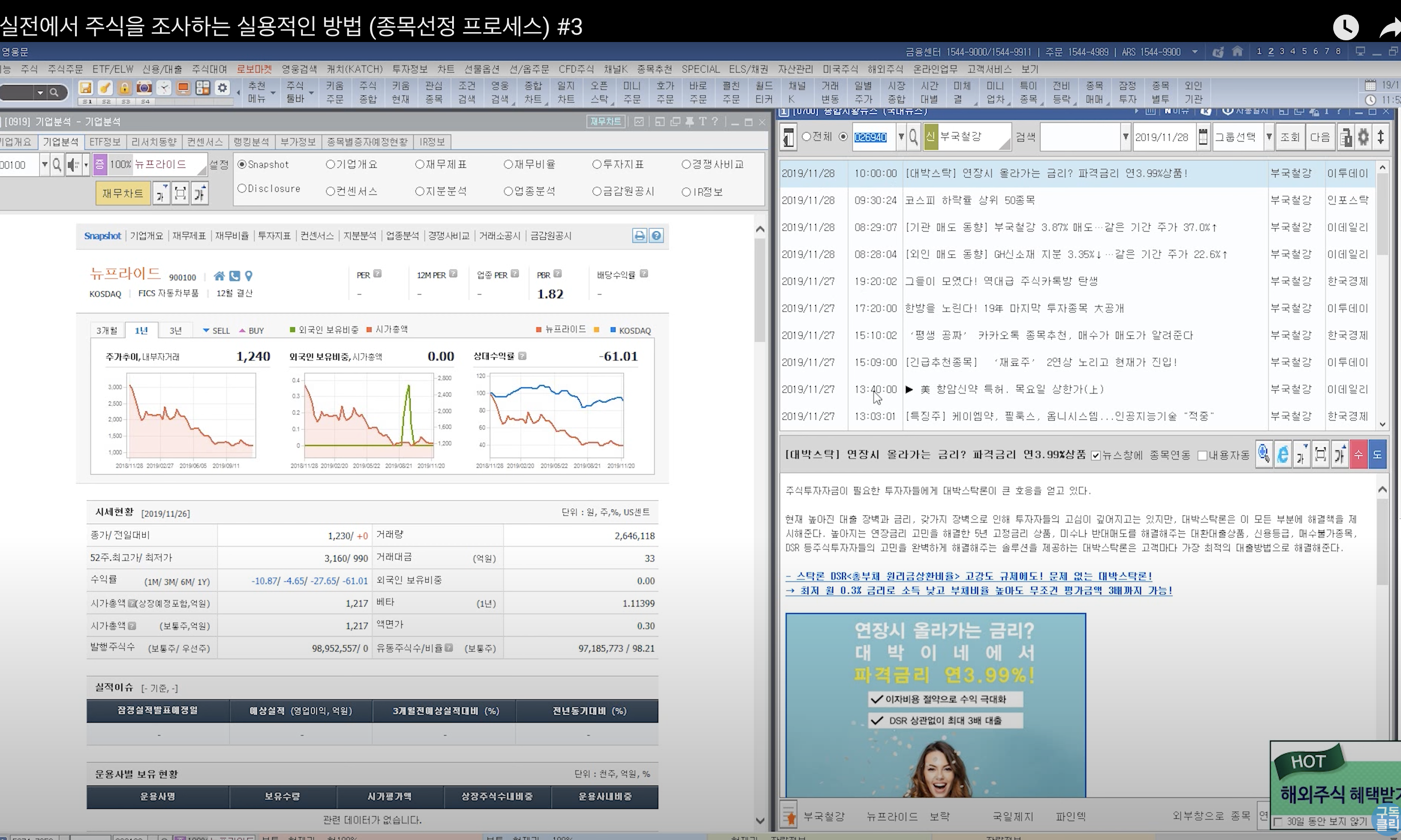 어니스트님은 뉴스를 HTS에서 최근 날짜부터 빠르게 훑어본다. 봐야할 것과 보지말아야할 것(광고 등)을 빠르게 판단한다.