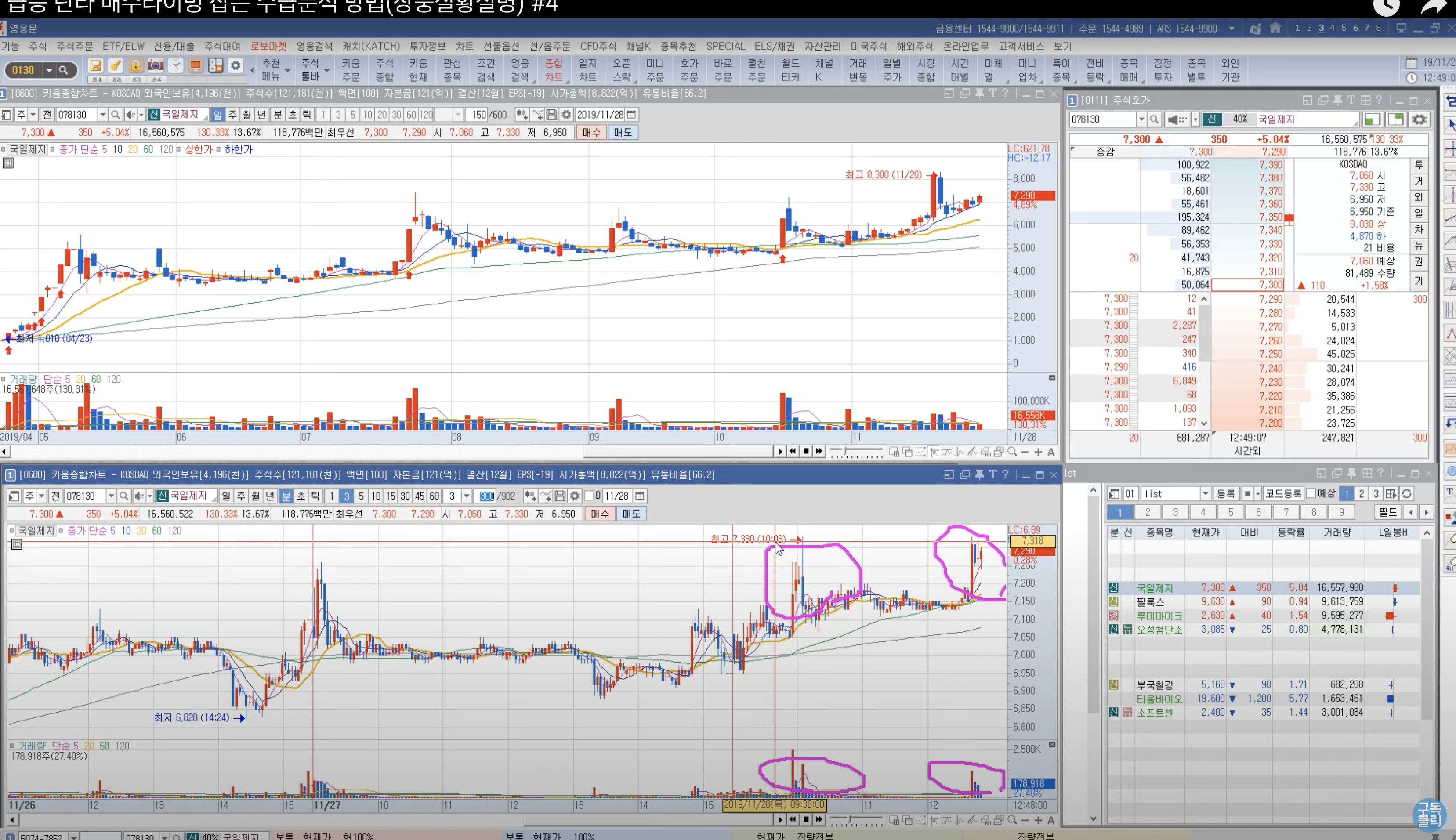 분봉을 확대해보면, 이 당시 국일제지는 거래량이 3분봉으로 100만정도는 나와줘야 힘을 받는다고 일컬을 수 있었다.