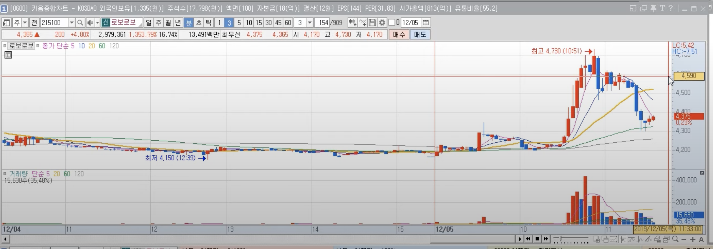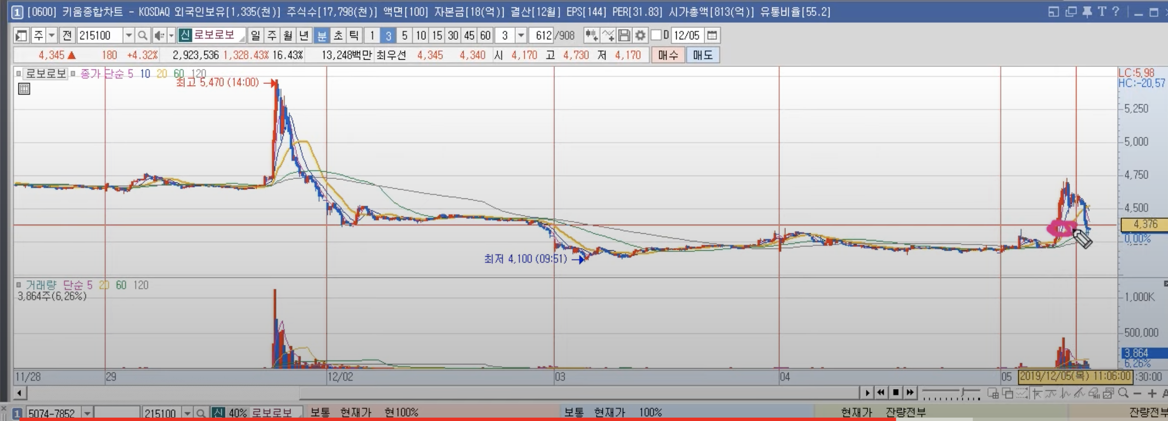 하지만 이 종목을 지금 보는게 아니라, 예전부터 분봉을 관찰해왔다면,