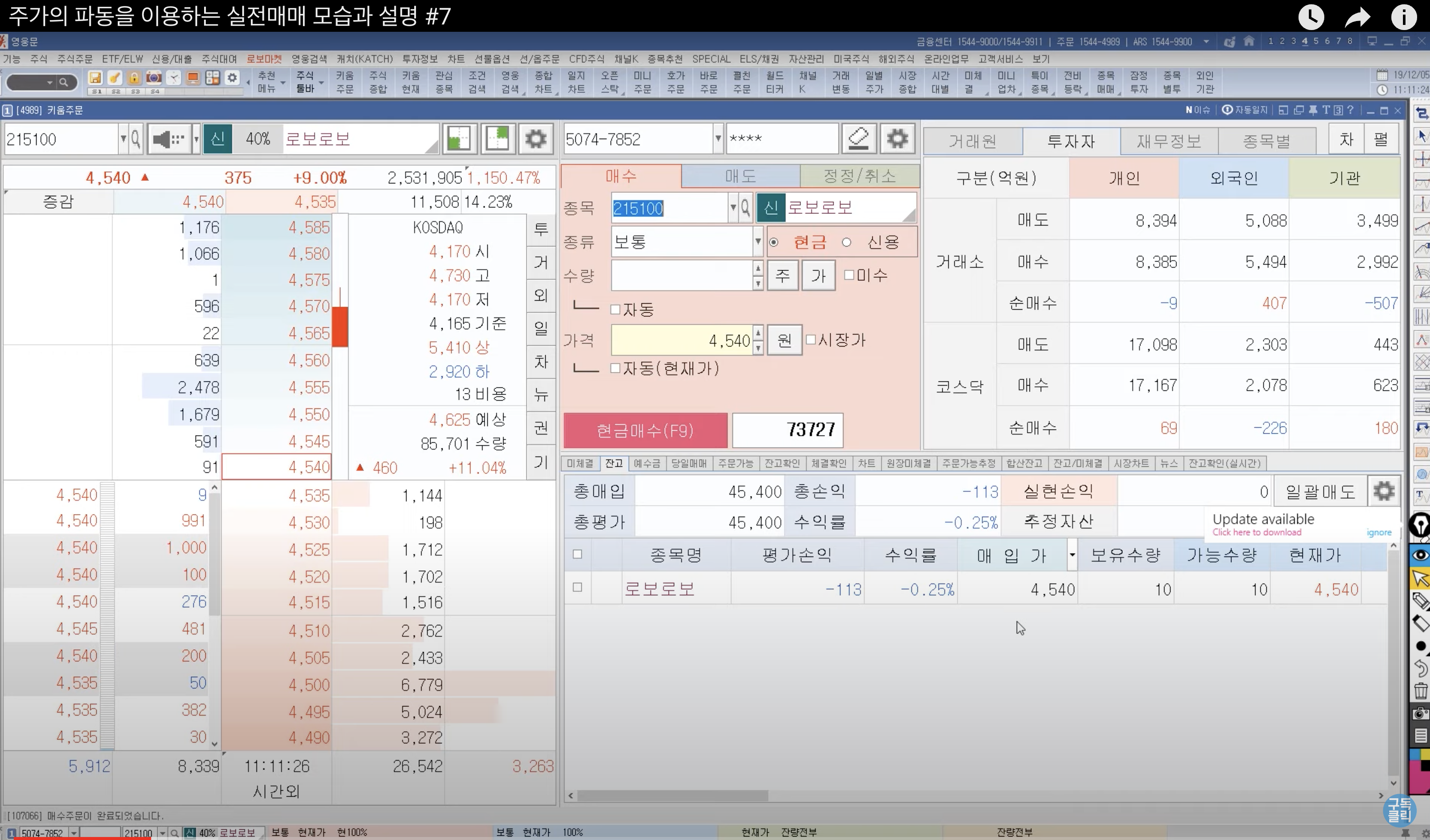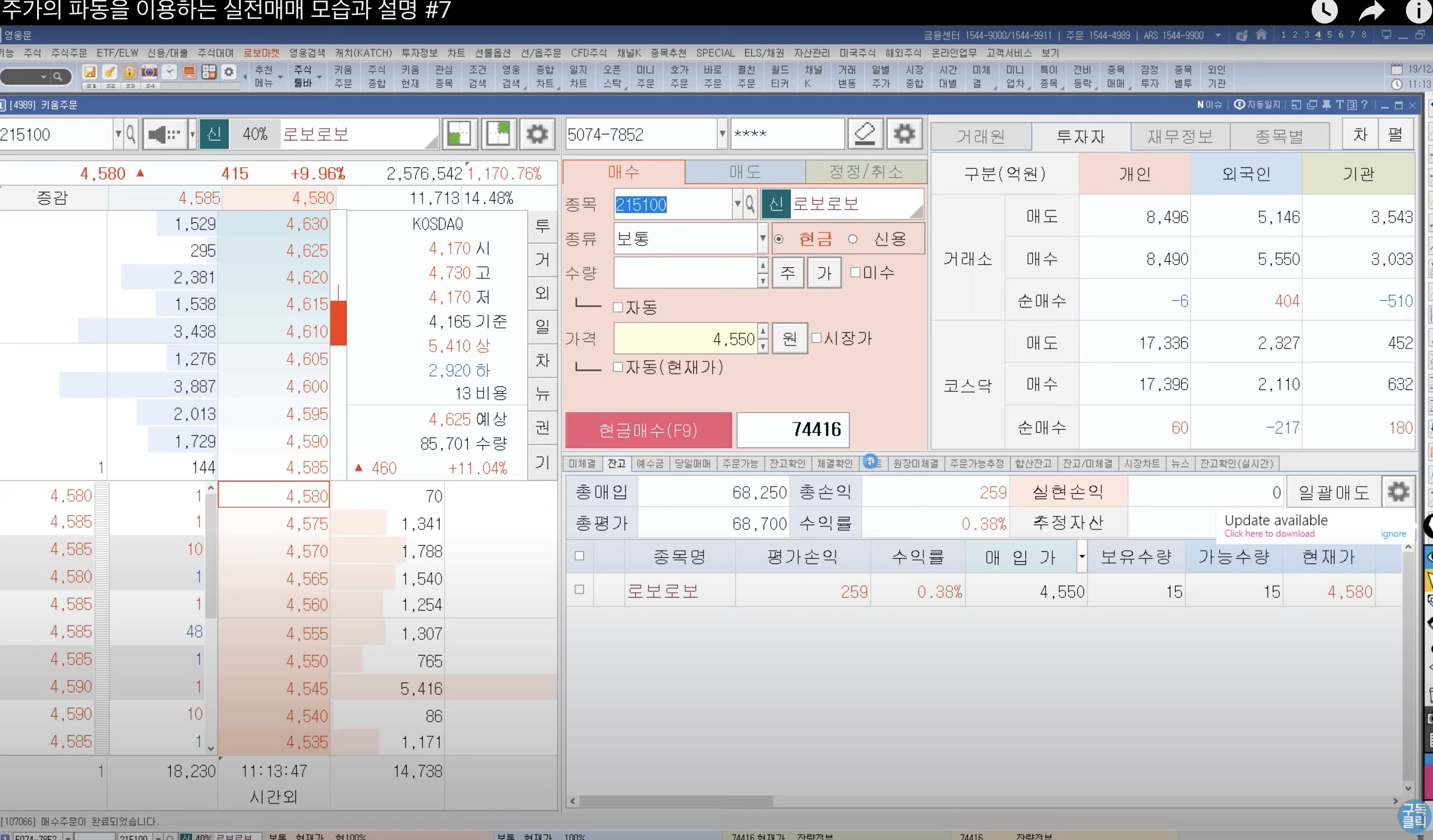 유튜브 : #7 주가의 파동을 이용하는 실전매매 모습과 설명