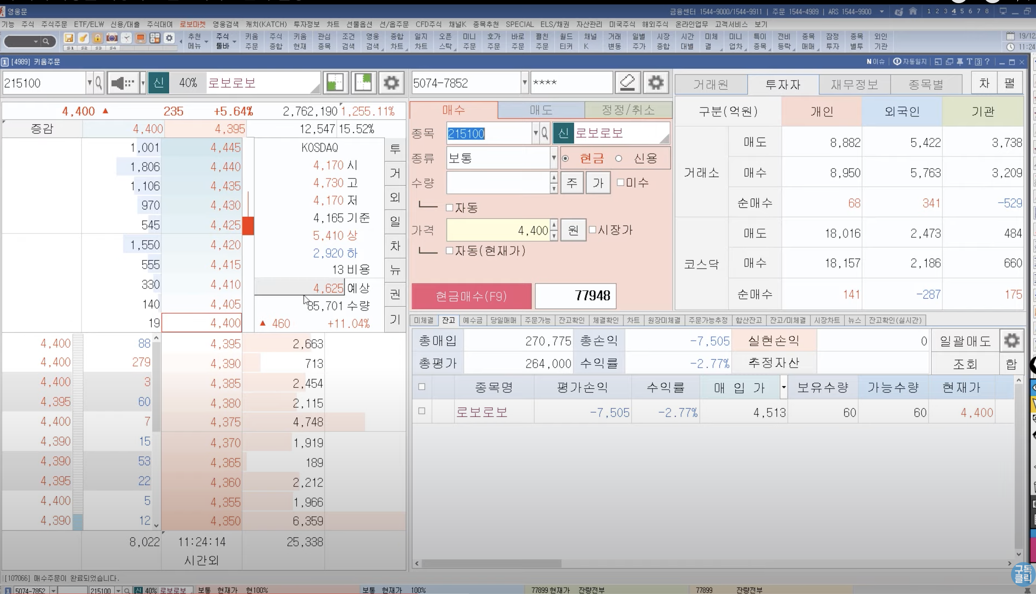 어니스트님의 실전매매 영상을 촬영한 것임.