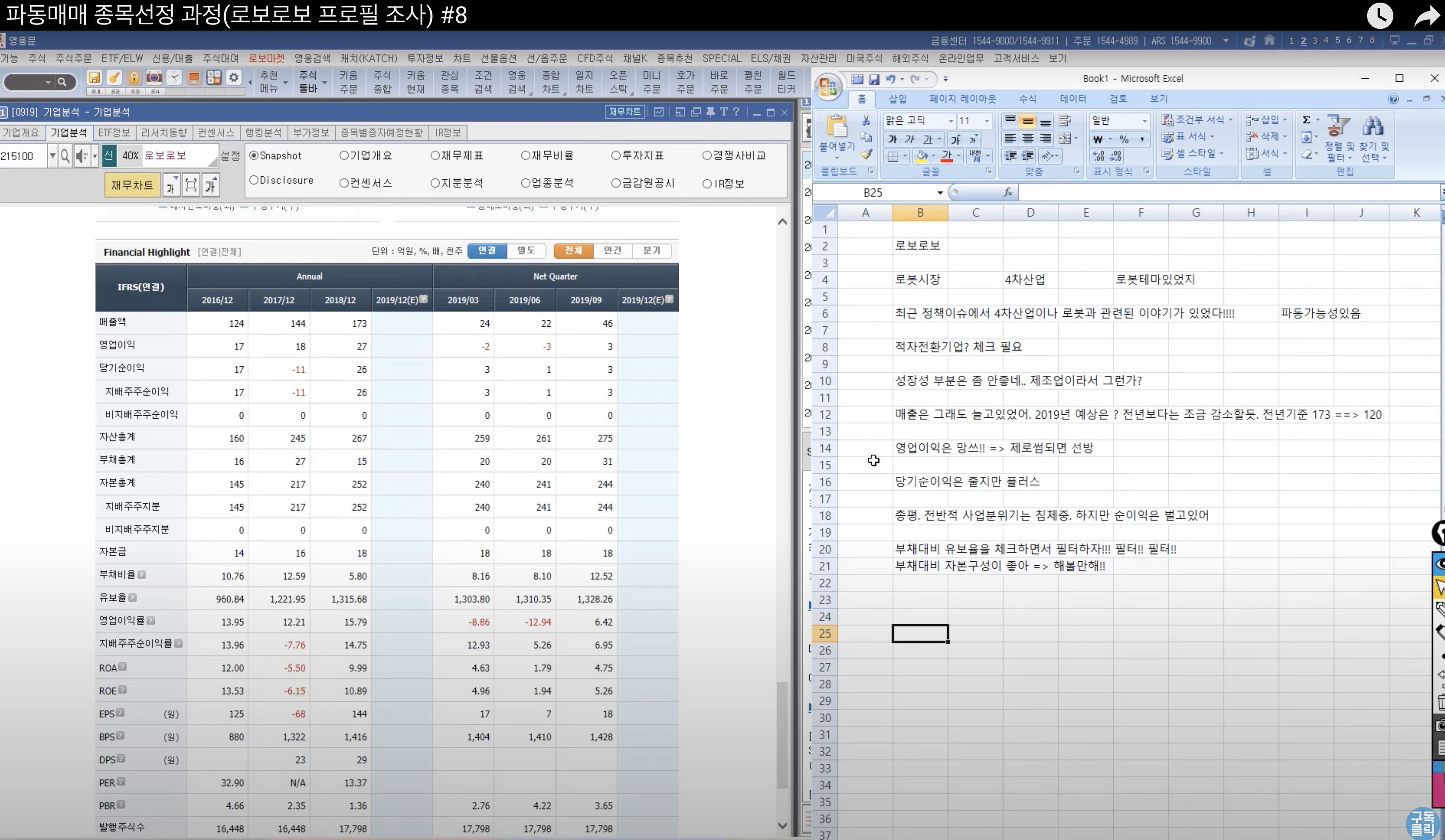 유튜브 : #8 파동매매 종목선정 과정(로보로보 프로필 조사)