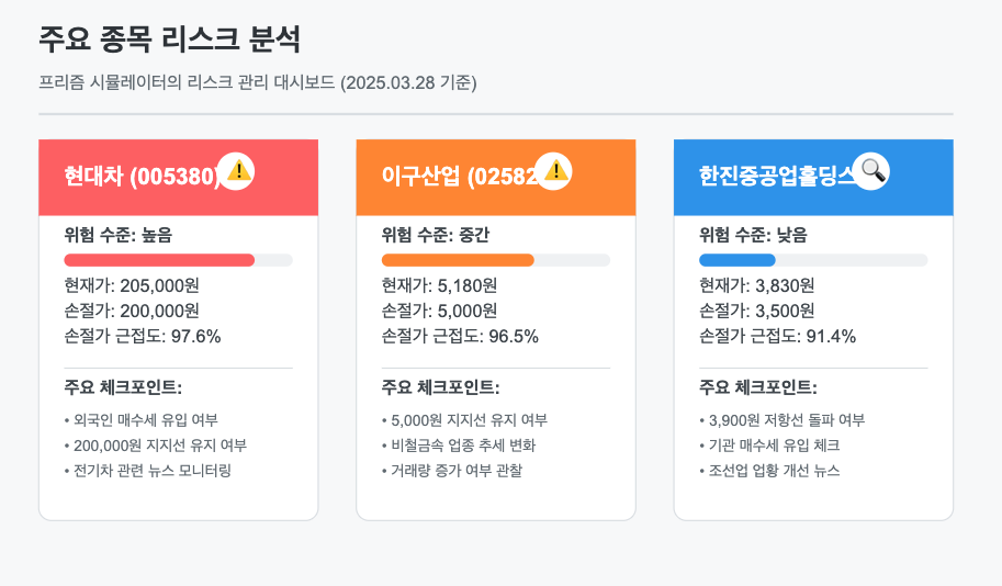 현재 포트폴리오 내 종목별 리스크 관리는 다음과 같이 진행되고 있습니다: