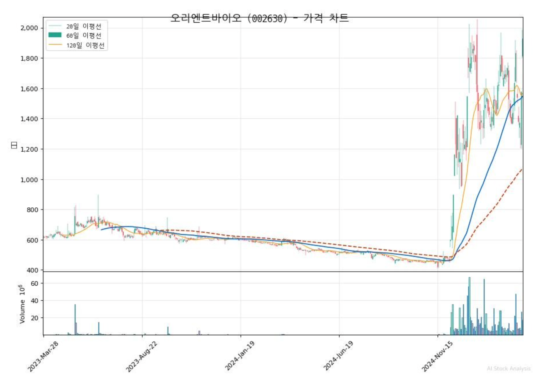 오늘은 지난주(2025.03.24~2025.03.28) 프리즘 인사이트의 AI 분석 시스템이 주목한 오리엔트바이오(002630)에 대한 심층 분석과 주요 투자 포인트를 공유해드립니다.